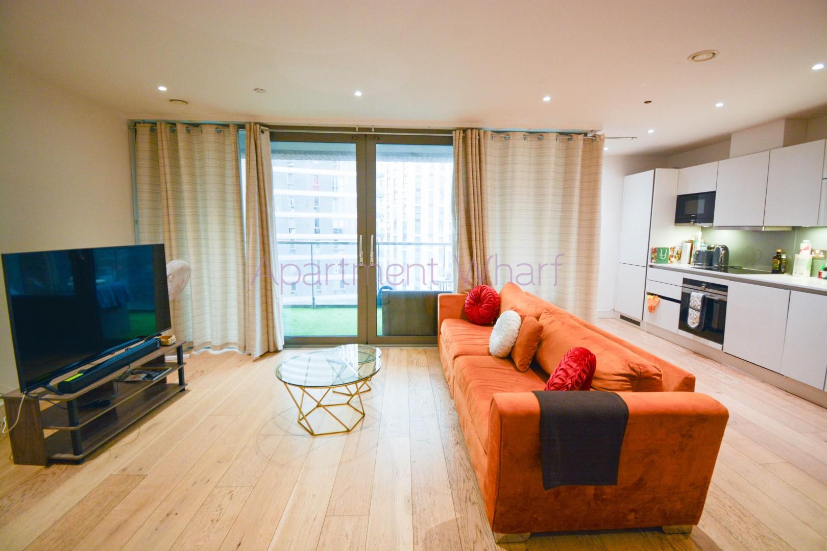 Beautiful modern apartment in Heritage Tower, Canary Wharf (E14) featuring a bright living room, private balcony, and a fully equipped kitchen with dishwasher and washing machine.